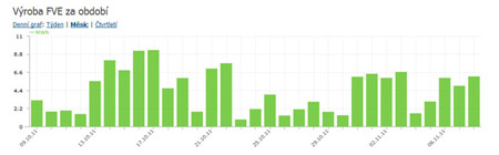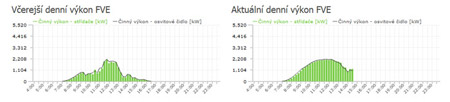 Přehledně jsou zde také zobrazeny grafy výrob:včerejší den, dnešní den, výroba FVE za dané období.